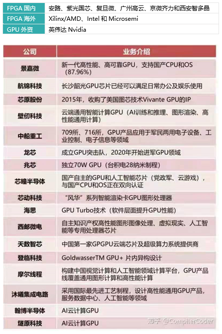 這些強烈的市場需求帶來了應用領域的更多創新、資本市場的追捧和更多新玩家加入的機會,除了全球應用市場和資本市場對英偉達GPU的追捧,英特爾和AMD也分別先后收購了FPGA廠商Altera和Xilinx,而我國幾家圖形處理器(GPU)開發商更是從創立那一天就成為了市值過10億美元的獨角獸。